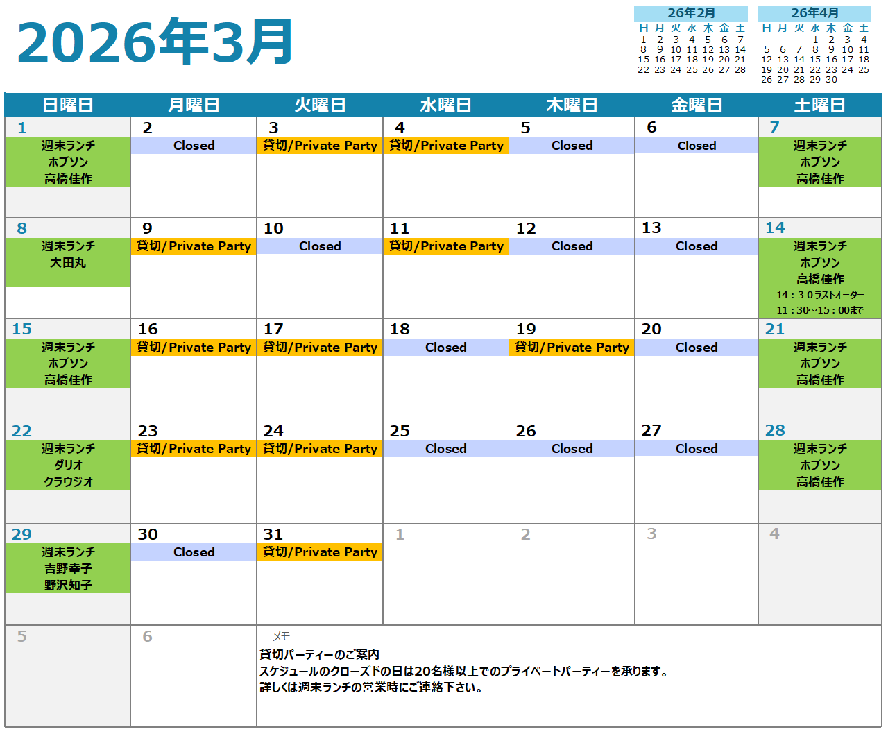 営業スケジュール