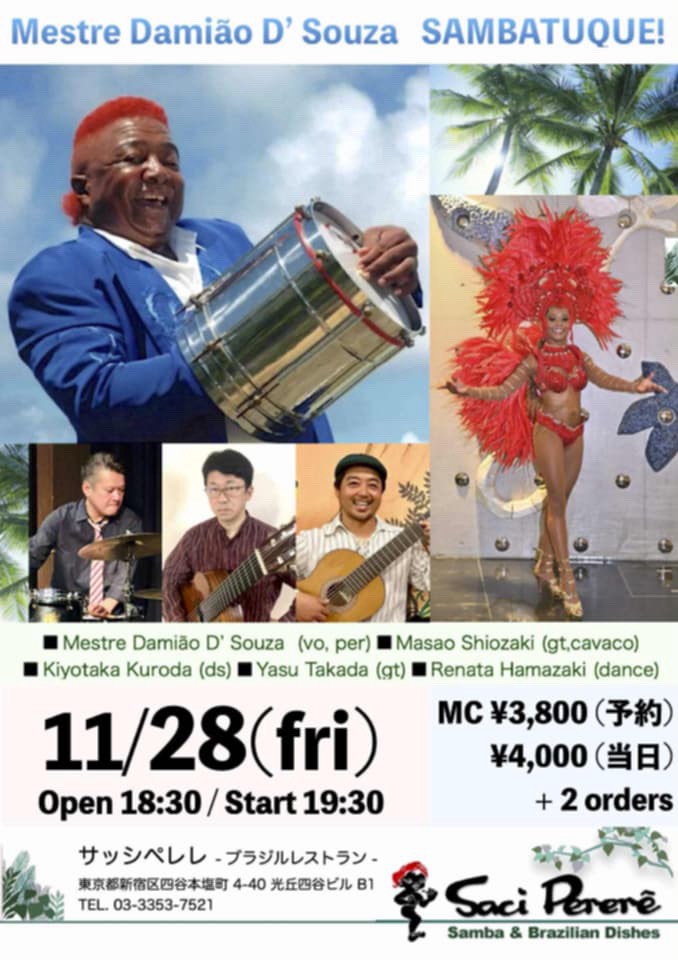 布上智子(Vo.),石川智(Dr.,Per.),長澤紀仁(Gt.),Gustavo Anacleto(Sax,Fl.)