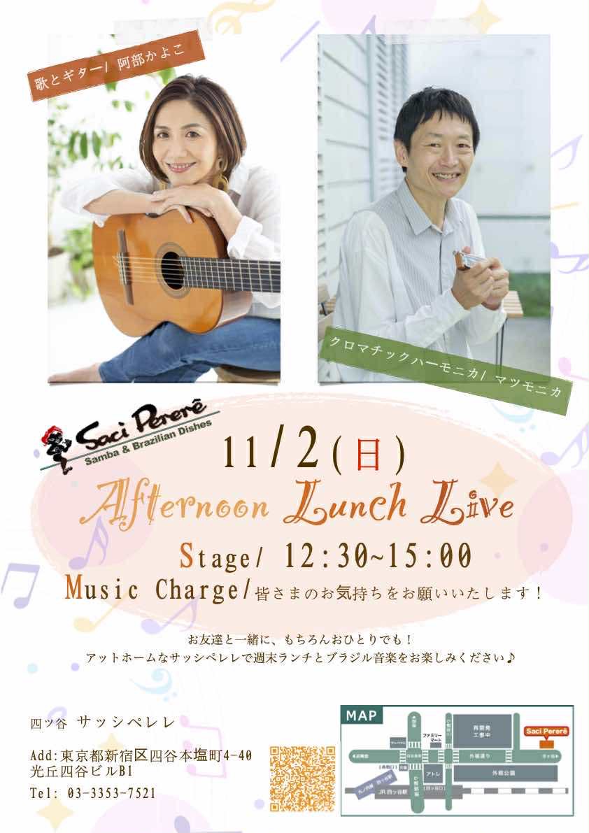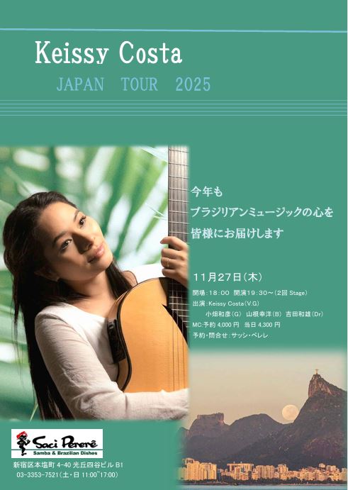 北山敦子(Vo.)、長澤紀仁(Gt.),長岡敬二郎(pandeiro)